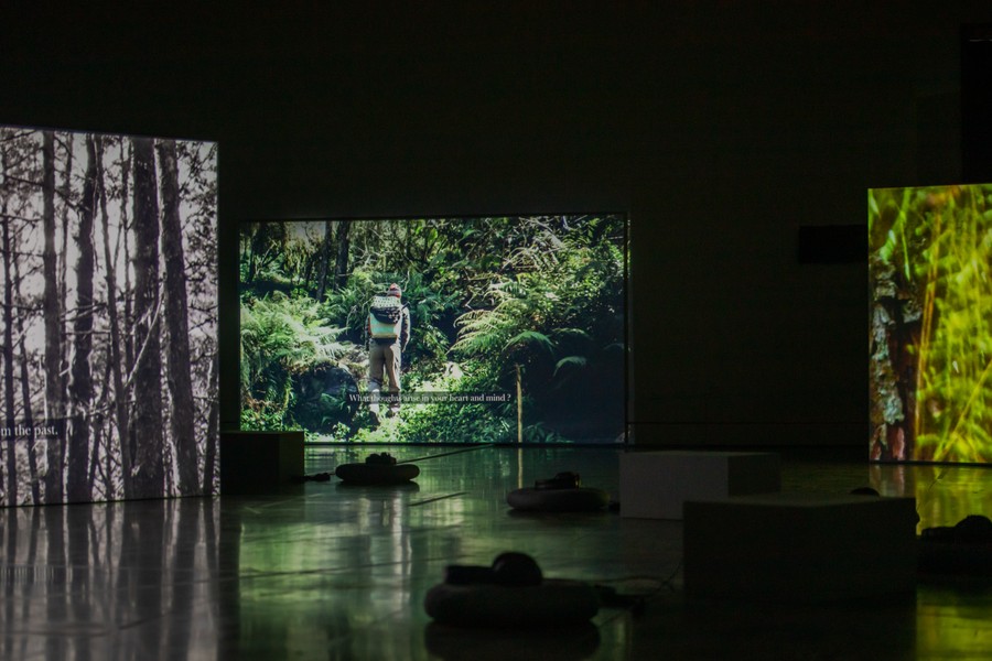 作品把「教育—狩獵—日常」疊映為一首緩慢的地景配樂。現場播放一部將近57分鐘的紀錄片,邀請觀者進入融合人文與生態的奇妙世界,讓開放的意識形態自然傳遞著交流、互動與對話。