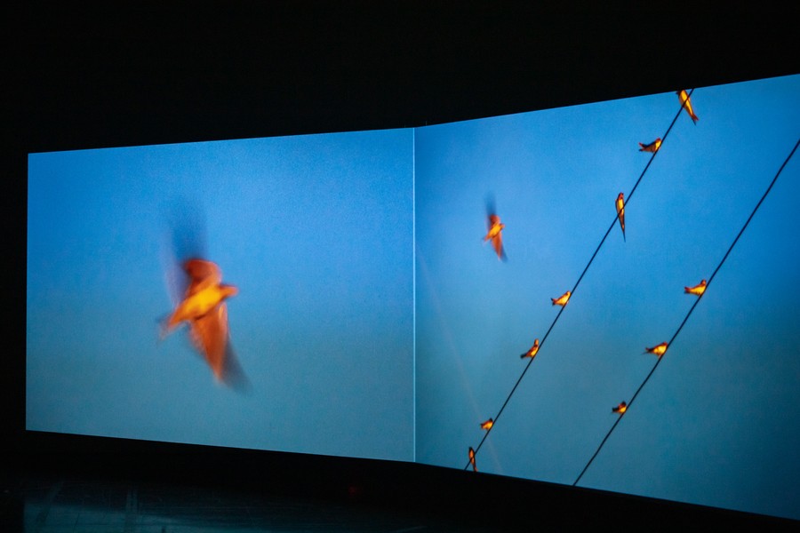 部落族人用手勢、步伐、氣息模擬著當時的地鳴聲,也傳遞出地震當下心底湧動的恐懼;當友人半開玩笑地說:「你們猜到底是那種動物可以在地震時存活下來?是小鳥!牠們在地震時就可以往天上飛。」更是一語點亮了這件作品的兩股聲流。地鳴引發的恐懼、恣意的鳥鳴可能同時發生,於不同物種而言,所謂當下就有著截然不同的生命軌跡,這些的聲音與情緒對話都讓人不斷沉澱思考。