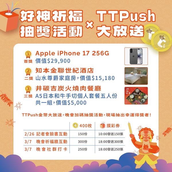 領取抽獎券及TTPush金幣活動辦法: