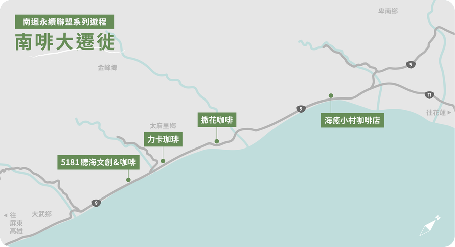 這不是旅行,這是一場集體的「咖啡因避難」。我們懂那種腦袋塞滿視訊會議、連靈魂都縮水的無奈,所以策劃了這場專屬忙碌人的「南啡大遷徙」。不需做功課、不需動腦力,你只需要帶上對咖啡的依賴,順著山海的脈動移動。這是一條科學證實(並沒有)最輕盈的逃跑路徑,讓我們在大武山的氣息裡,完成一場優雅且不費力的靈魂回填。