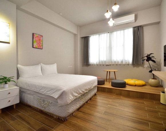 樑柱多,通常就需要更多的包材裝潢,容易釋放出危害人體的甲醛成份。因此,在畫稿設計階段時,簡姊特別將所有的房間都避開柱子,開闊四方的格局,僅運用環保漆塗料以及實木家具裝點,為的就是讓客人一夜好眠。